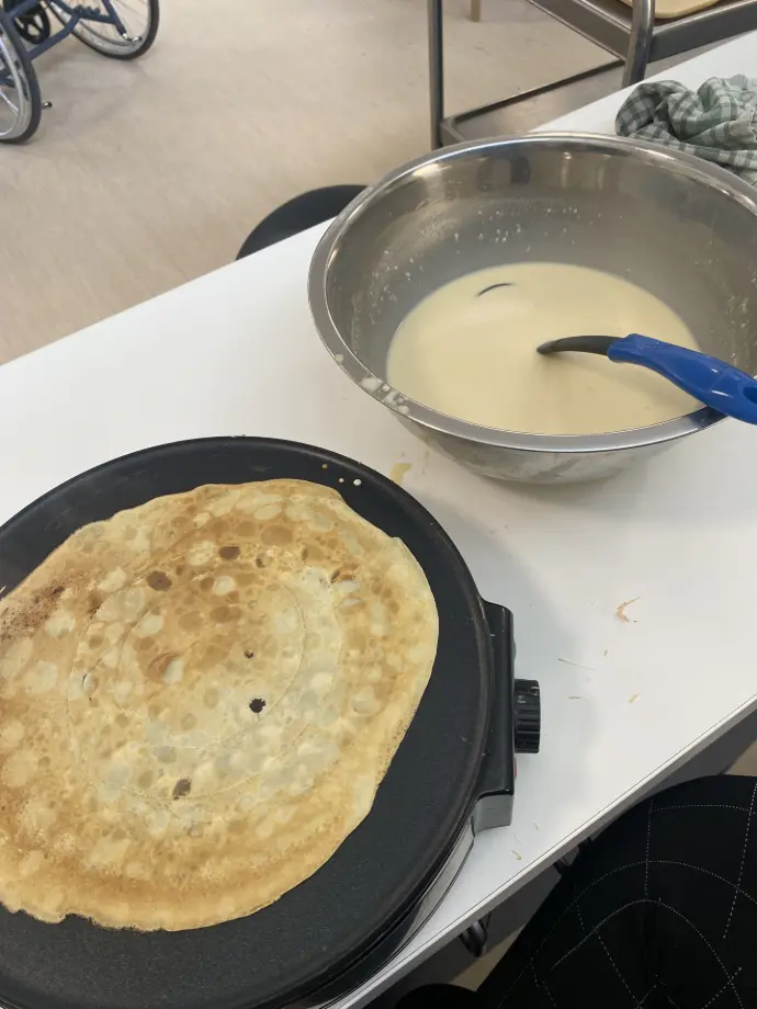 Le dimanche 21 septembre 2025, les professionnels de l’Hébergement 1 ont eu la belle initiative de préparer un goûter un peu spécial pour les résidants… avec de délicieuses crêpes faites maison !